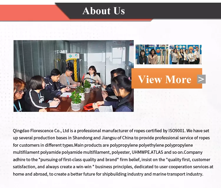 is a professional manufacturer of ropes certified by ISO9001. We have set up several production bases in Shandong, Jiangsu, China to provide professional service of ropes for customers in different types. We are an export manufacturing enterprise of modern new type chemical fiber rope nets. We have domestic first-class production equipment and advanced detection means and has brought a number of industry professional and technical personnel together, with ability on product research&development and technological innovation. We also have core competitiveness products with independent intellectual property rights.